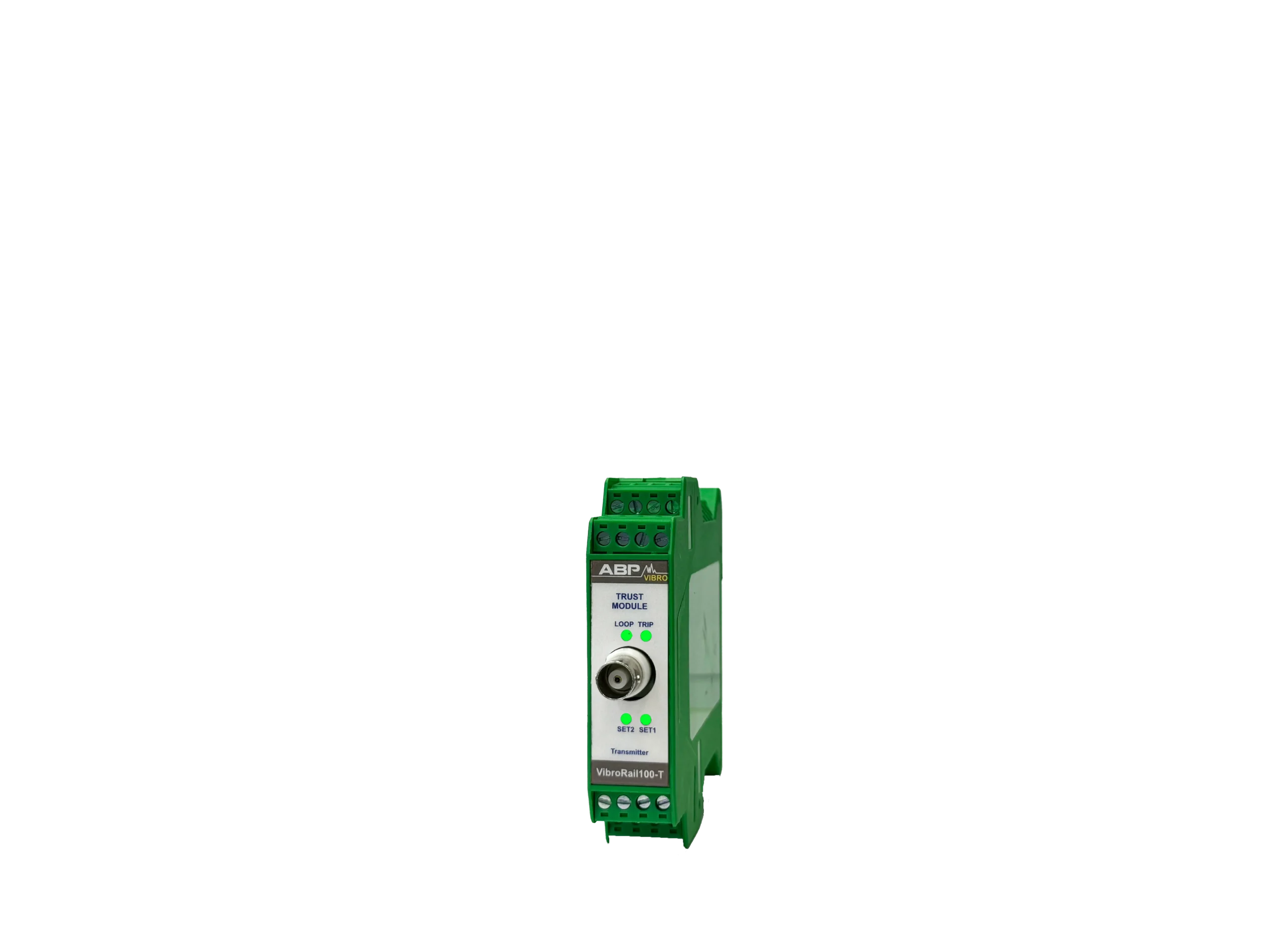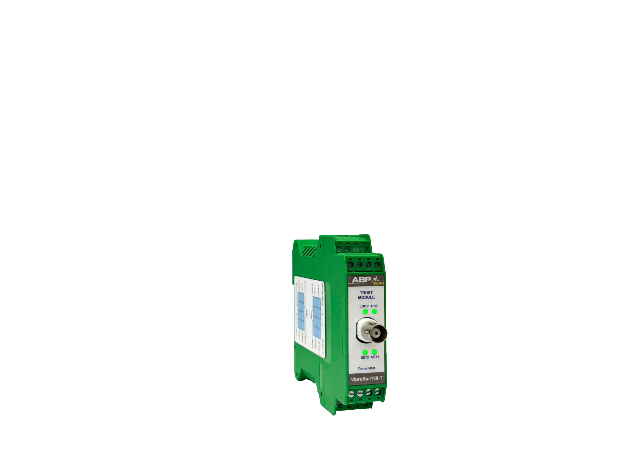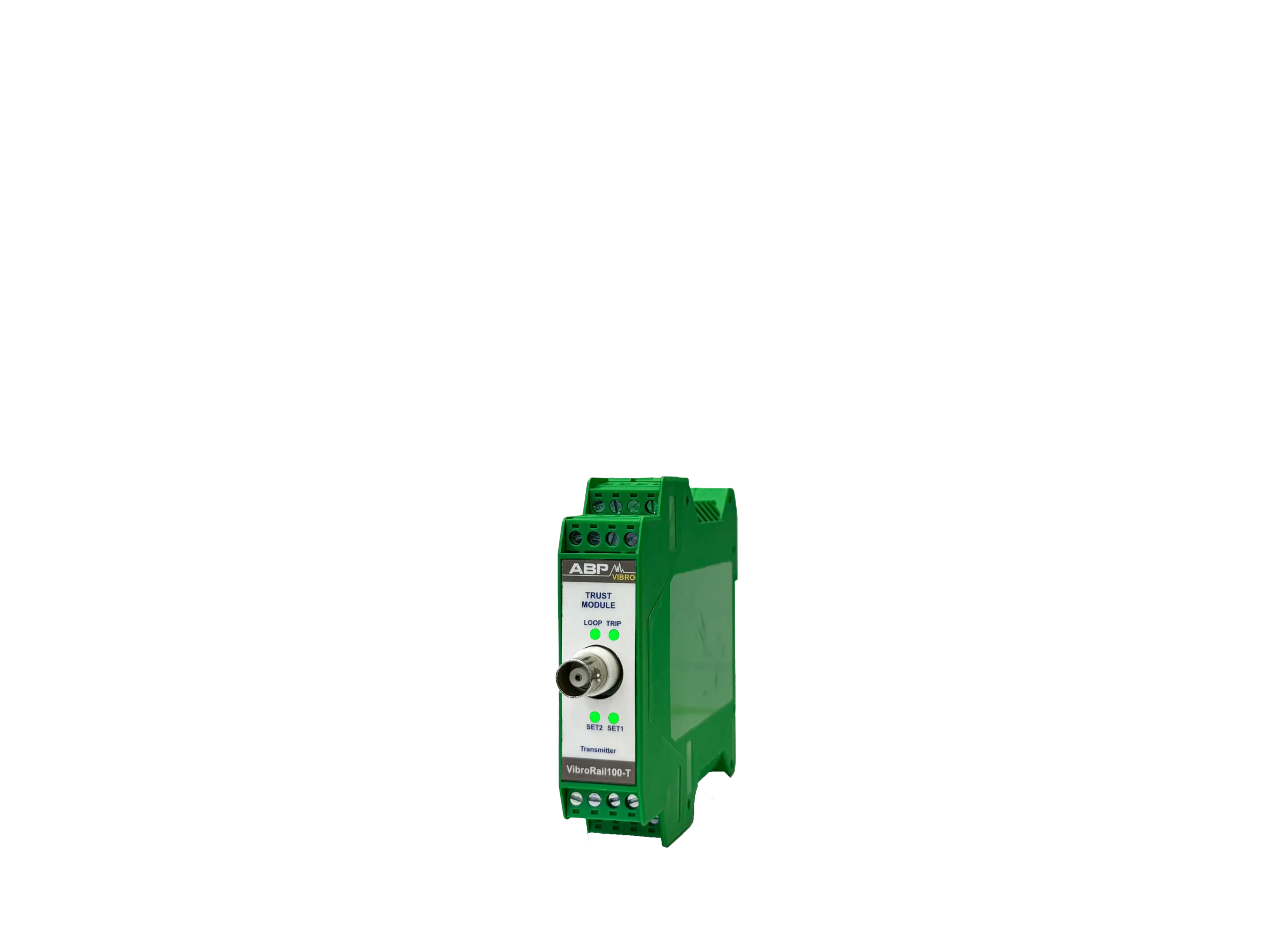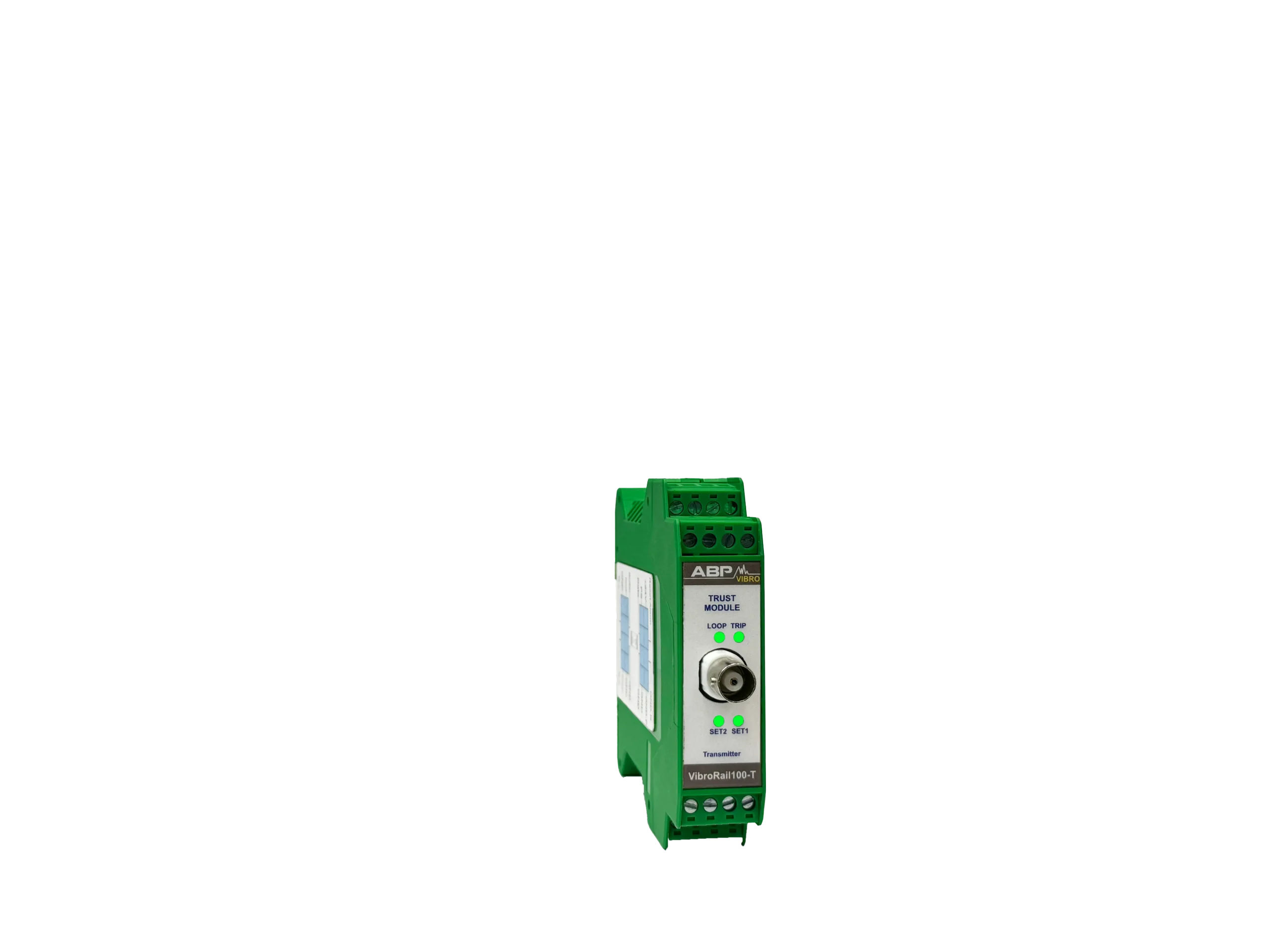 سیستم VibroRail 100-T یک سیستم مستقل آنالوگ است که بنا بر مشخصات ذکر شده در استاندارد API-670 برای کنترل و بررسی موقعیت محوری عمل میکند. این سیستم مانند دیگر ماژولهای مشابه دارای رله و خروجی 4-20 mA برای PLC/DCS یا دیگر سیستمهای ذخیرهی استاندارد متناسب با 4-20mA است. همچنین BNC خروجی برای استفادهی سیستمهای قابل حمل برای بررسی سیگنال فراهم شده است. از دیگر امکانات ارائه شده در این سیستم میتوان به تاخیر در اخطار، energize رلهها و ترمینال ریست از راه دور اشاره کرد. این سیستم با سنسورهای جابجایی کار میکند و از سیستم در برابر بخش DC سیگنال محافظت میکند.