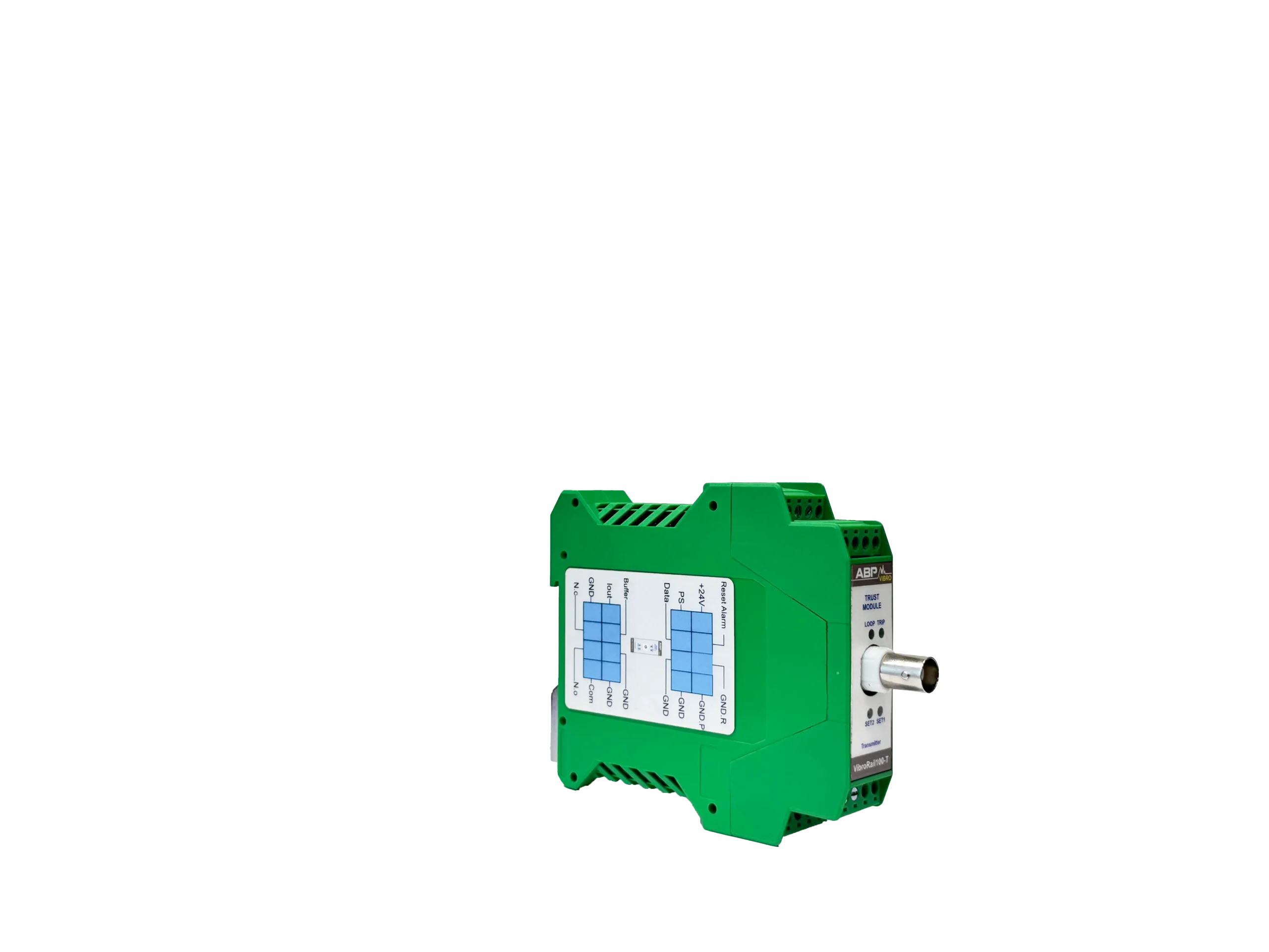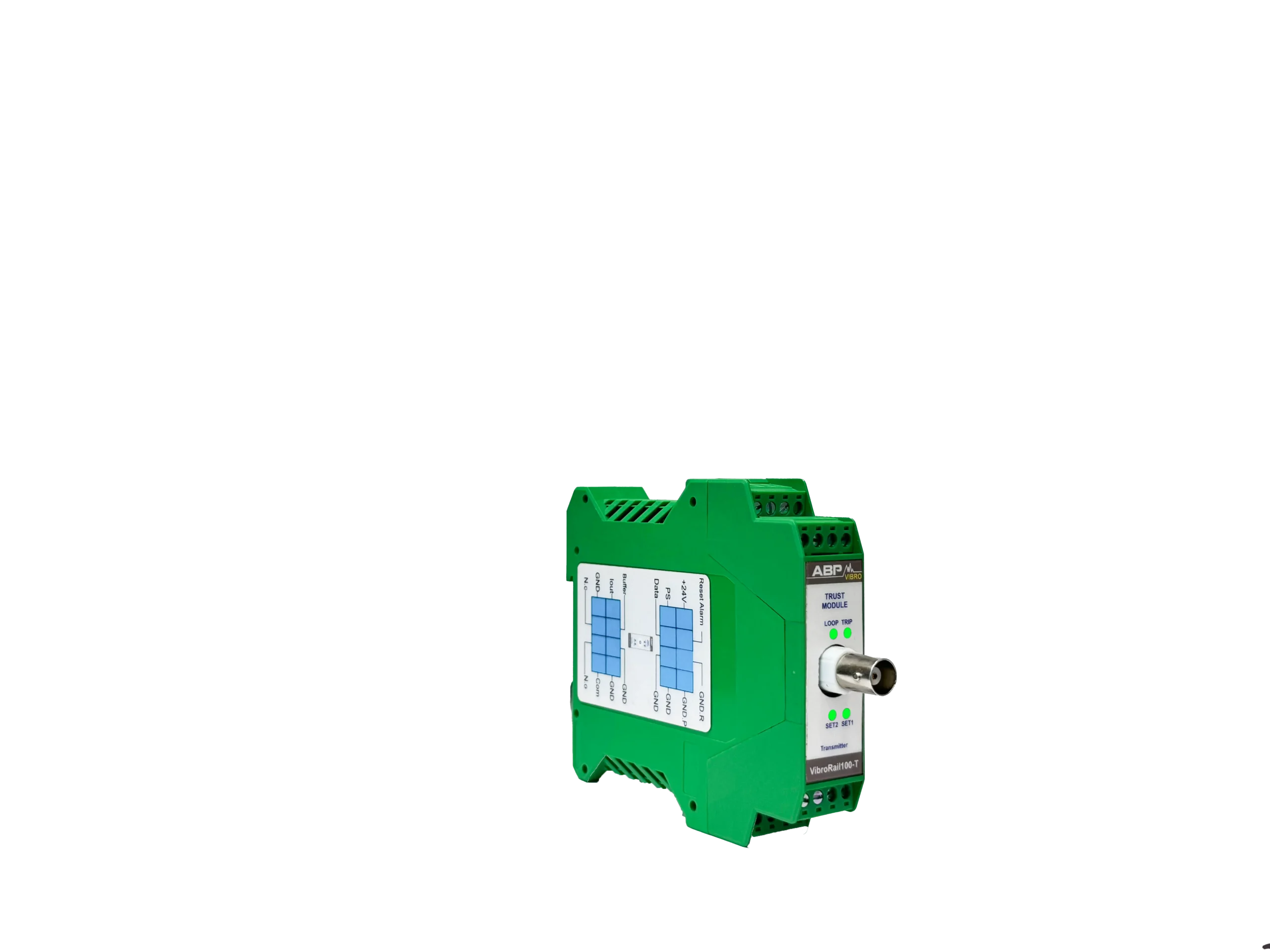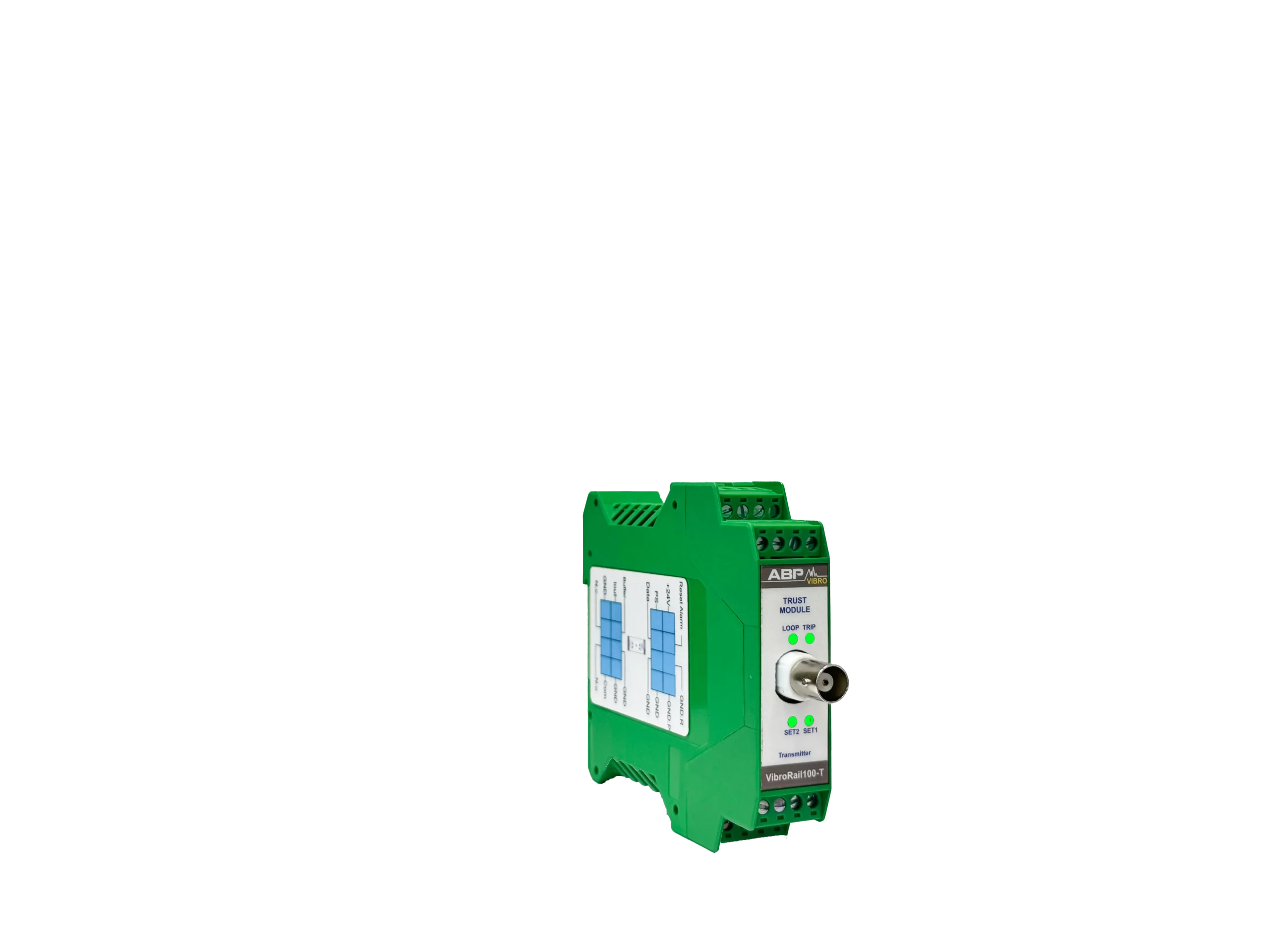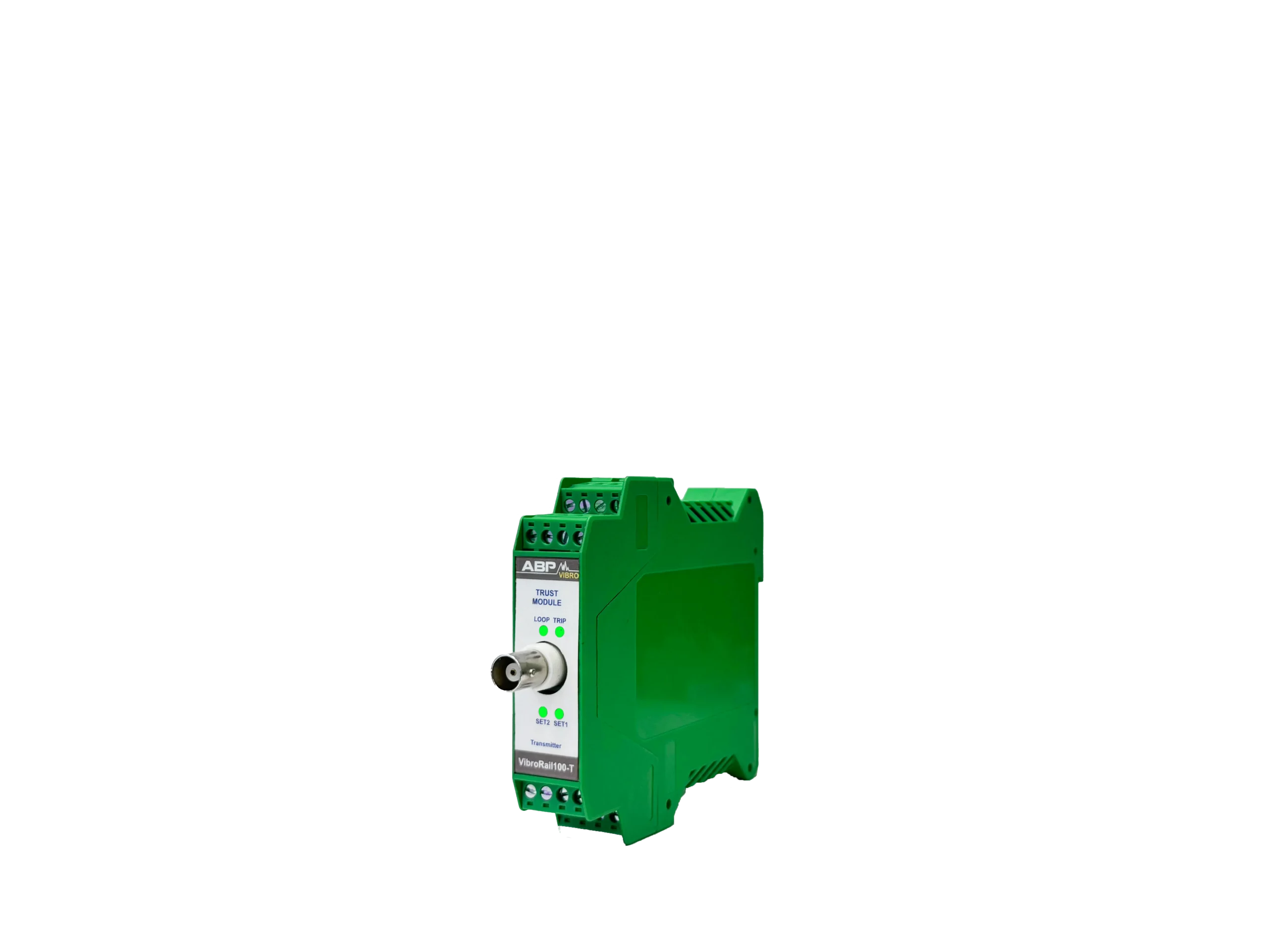سیستم VibroRail 100-T یک سیستم مستقل آنالوگ است که بنا بر مشخصات ذکر شده در استاندارد API-670 برای کنترل و بررسی موقعیت محوری عمل میکند. این سیستم مانند دیگر ماژولهای مشابه دارای رله و خروجی 4-20 mA برای PLC/DCS یا دیگر سیستمهای ذخیرهی استاندارد متناسب با 4-20mA است. همچنین BNC خروجی برای استفادهی سیستمهای قابل حمل برای بررسی سیگنال فراهم شده است. از دیگر امکانات ارائه شده در این سیستم میتوان به تاخیر در اخطار، energize رلهها و ترمینال ریست از راه دور اشاره کرد. این سیستم با سنسورهای جابجایی کار میکند و از سیستم در برابر بخش DC سیگنال محافظت میکند.