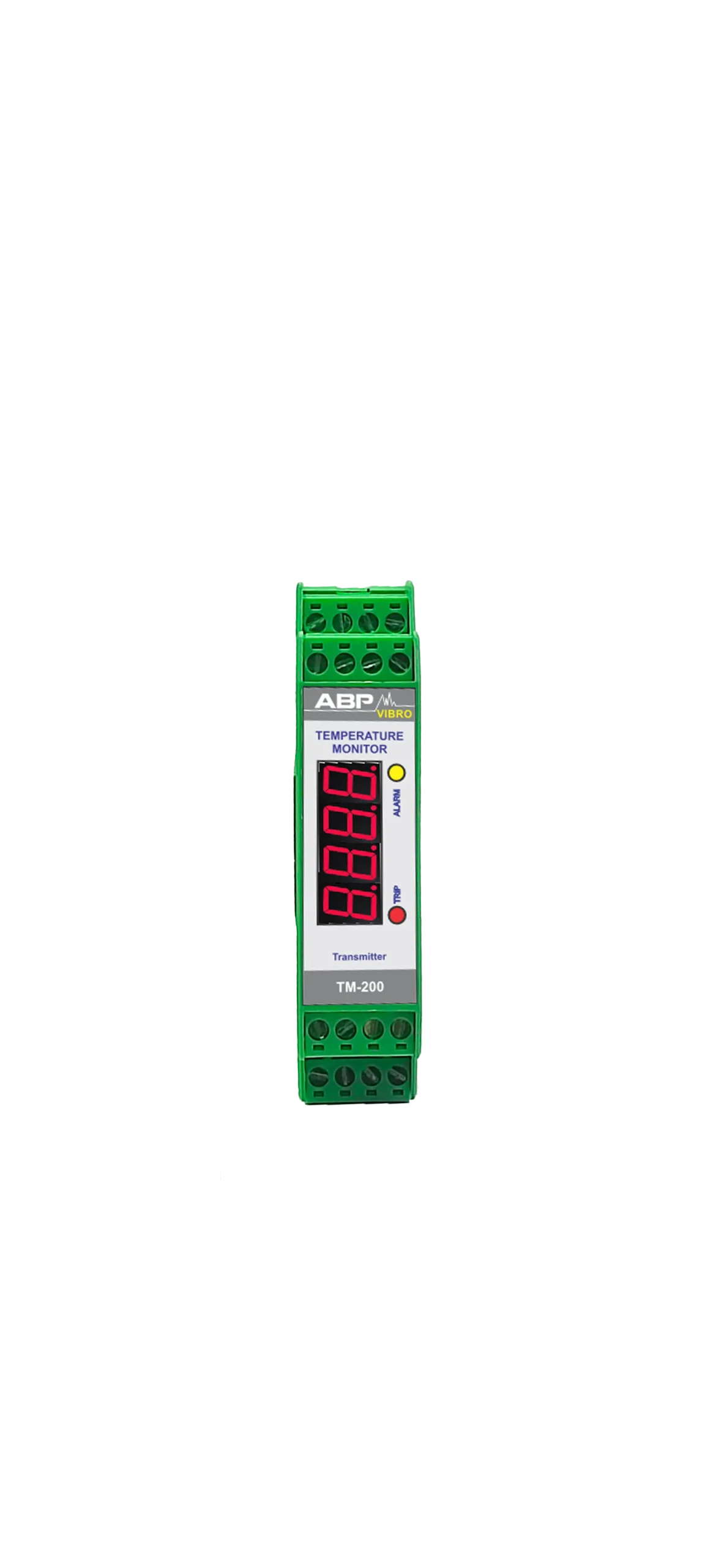 VibroRail-Tm200 یک سیستم واحد، متراکم و با دقت بالاست که با استفاده از سنسورهای اندازهگیری دمای RTD برای Pt100 صد اٌهم فرایند پایش و اندازهگیری دما را انجام میدهد. این سیستم امکان انتخاب واحد اندازهگیری (°F / °C) و رزولوشن (1° , 0.1°) را به کاربر ارائه میدهد. امکان استفاده از 2، 3 و 4 سیم ورودی مقاومت سیستم را کاهش داده و دقت عملکرد سیستم را افزایش میدهد. همچنین یک خروجی آنالوگ مقیاس بندی شده برای تنظیمگر سیگنال 4-20 میلی آمپر نیز ارائه میشود. این سیستم که دارای دو رلهی طراحی شده برای شناسایی حدود اخطار است، از پروتکل ارتباطی Modbus-RTU (RS-485) برای برقراری ارتباط سری با سیستم استفاده میکند. در انتها، یک نمایشگر با توانایی نمایش 4 رقم برای خوانش مستقیم دما بر روی این ماژول وجود دارد.